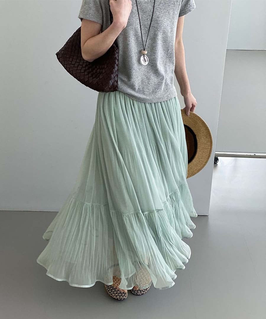 Layered Tulle Long Skirt 222039 ミントグリーン