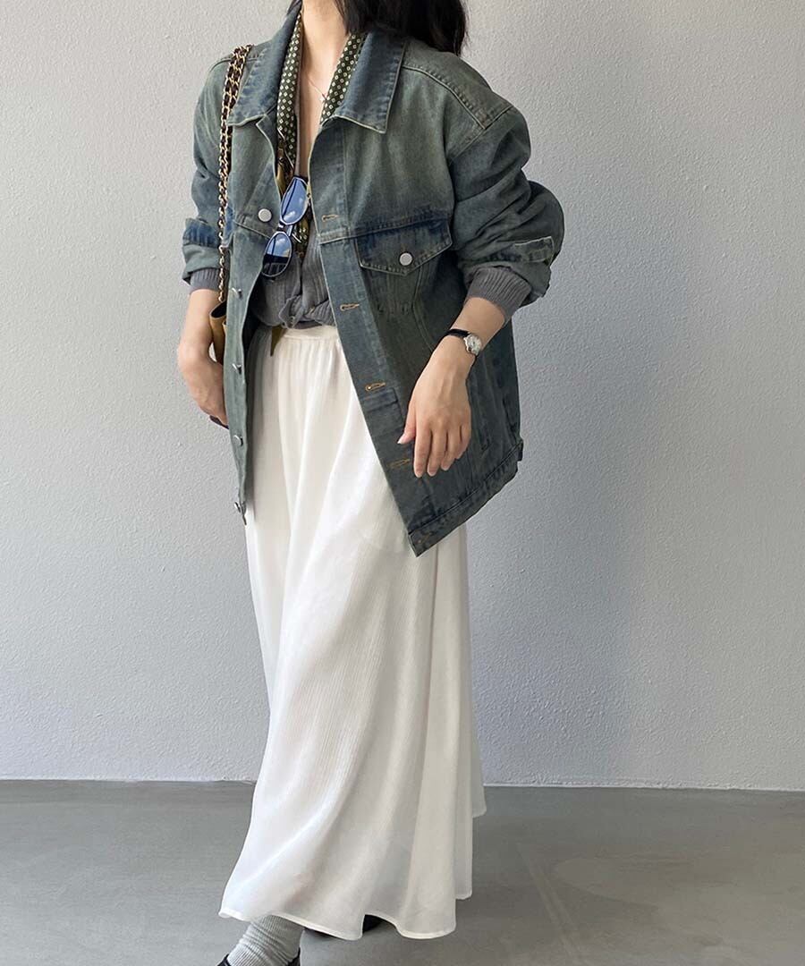 このジャケットは、春夏はもちろんのこと、寒い季節でもインナーに重ね着することで温かさを保ちながら、スタイリッシュな印象を与えてくれます。シンプルなTシャツやワンピースと合わせるだけで、洗練された雰囲気が漂います。