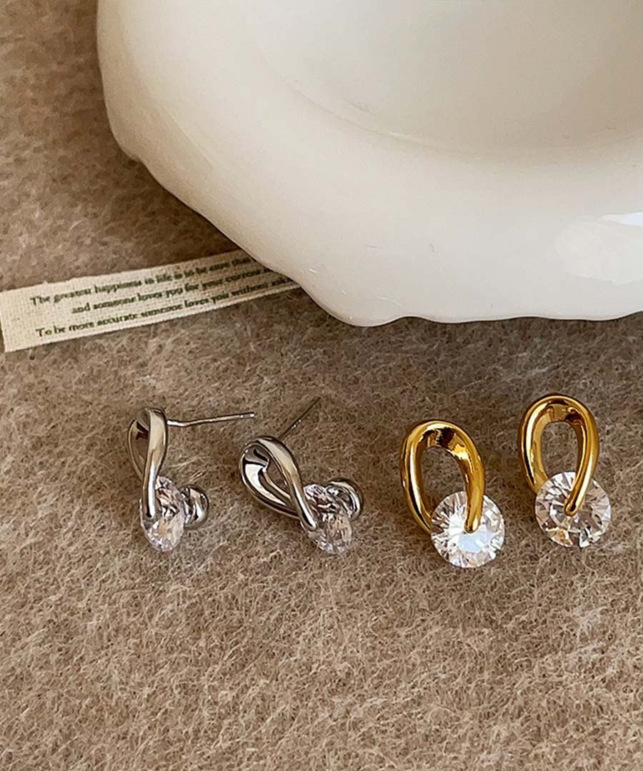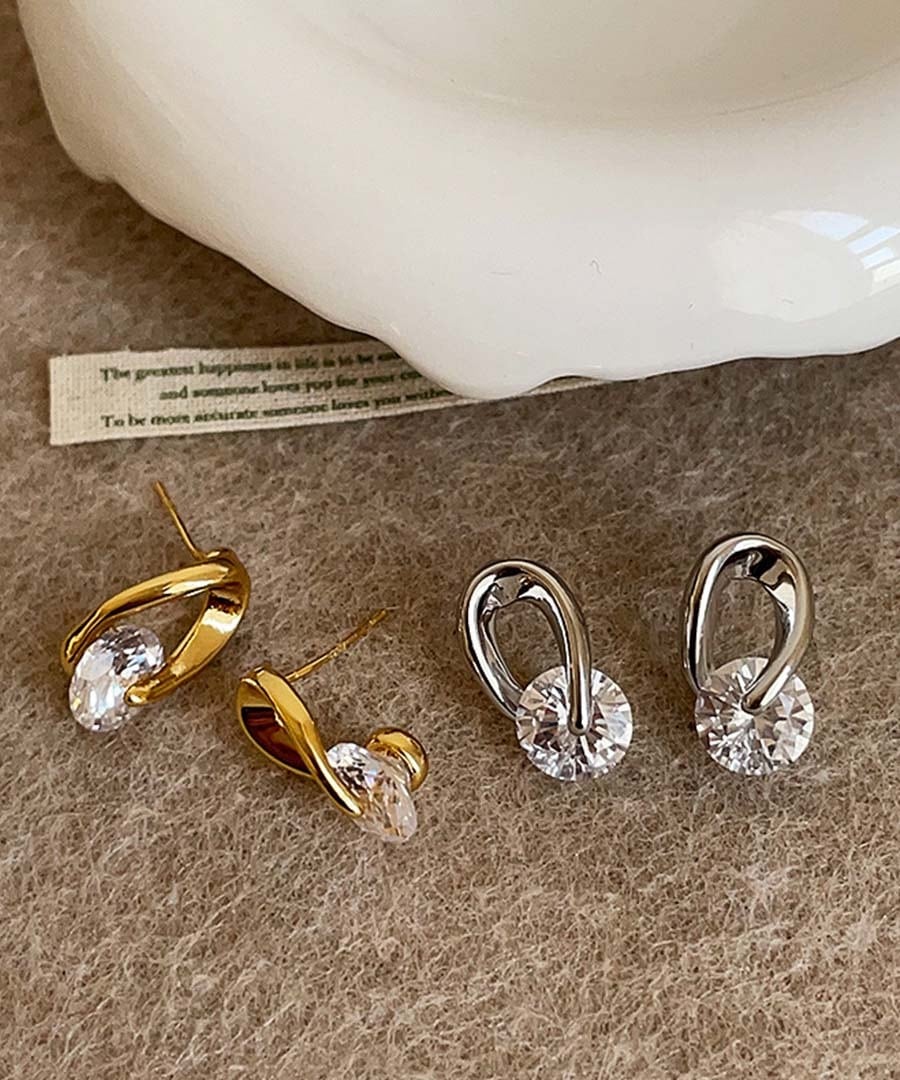 Rotating Zircon Twisted Metal Stud Earrings 26199 ゴールド